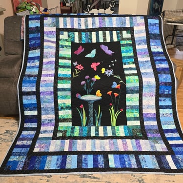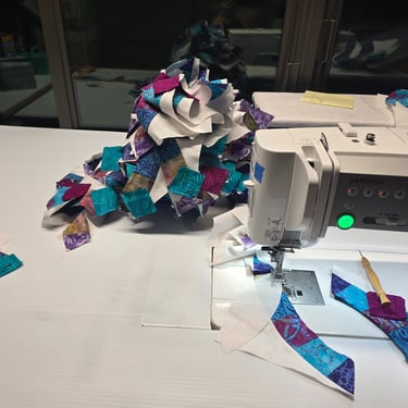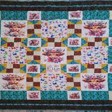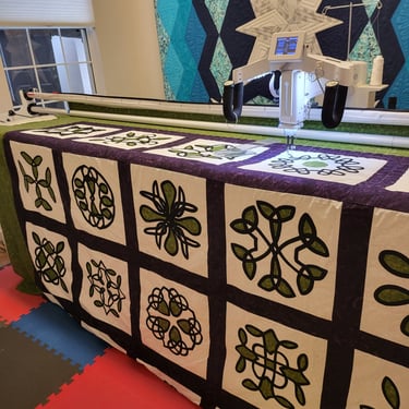 Custom quilt projects include unique textile creations such as landscape quilts, wall hangings, and specialty designs.