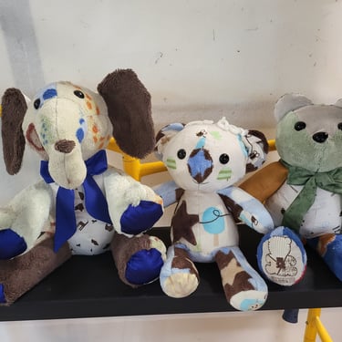 Memory bears and keepsake animals are handcrafted from clothing to create comforting reminders of meaningful moments.